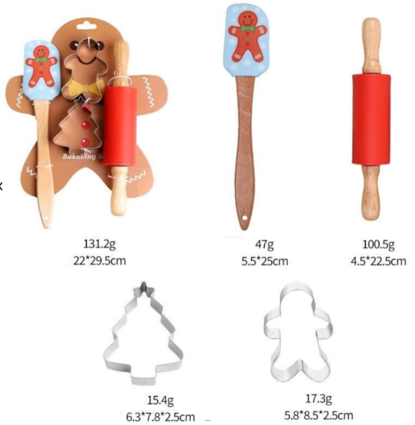 Set de 4 Espatula 25cm, Palo de Amasar 23x4cm y Moldes de Acero Inox - 52914